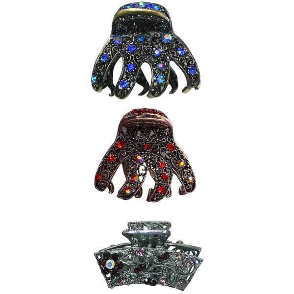 - JCGY Set of 3 Crystal Jaw Clips Metal Claws, in 2 unique styles