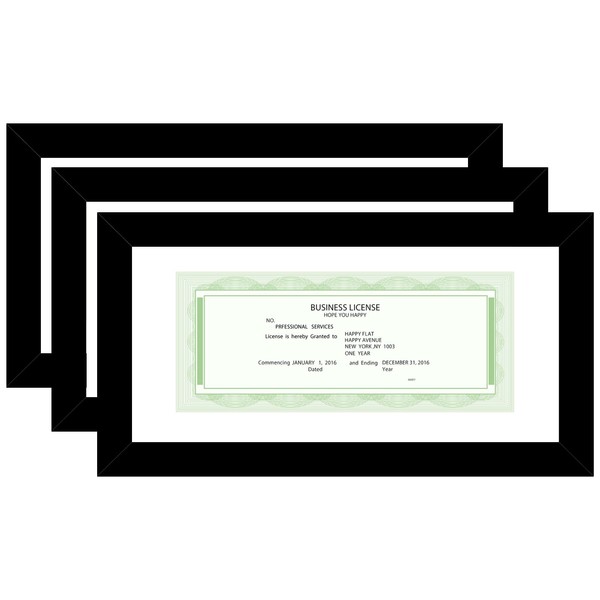 JCJMY 5x10 Business License Frame Set of 3 Black for 3.5x8 Standard Business License with Mat or 5x10 Picture without Mat, 5 x 10 Frame with Shatter Resistant Plexiglass for Wall Hanging or Tabletop