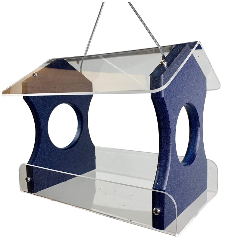JCs Wildlife Blue Recycled Poly Lumber Hanging Bird Feeder - Holds 2 Cups of Bird Seed - Great for Your Backyard Bird Feeding Garden