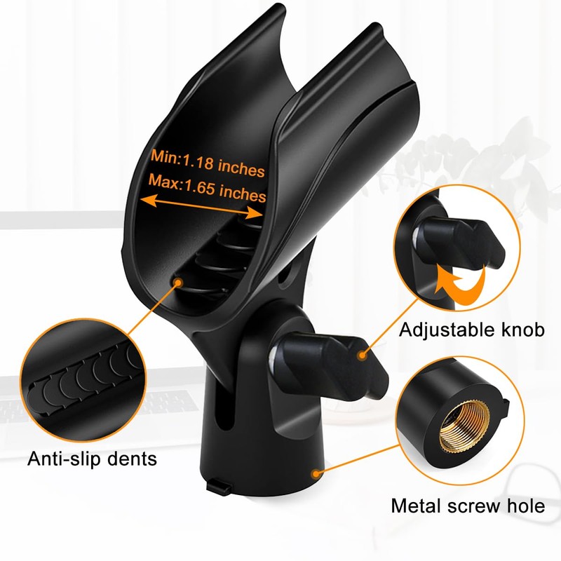 - Wide Compatibility: The included mic clip is suitable for most dynamic microphones such as SM58, Q2U, PGA48, SM48, etc. The package also comes with a 3/8” to 5/8” screw adapter which is compatible with most microphones on the market