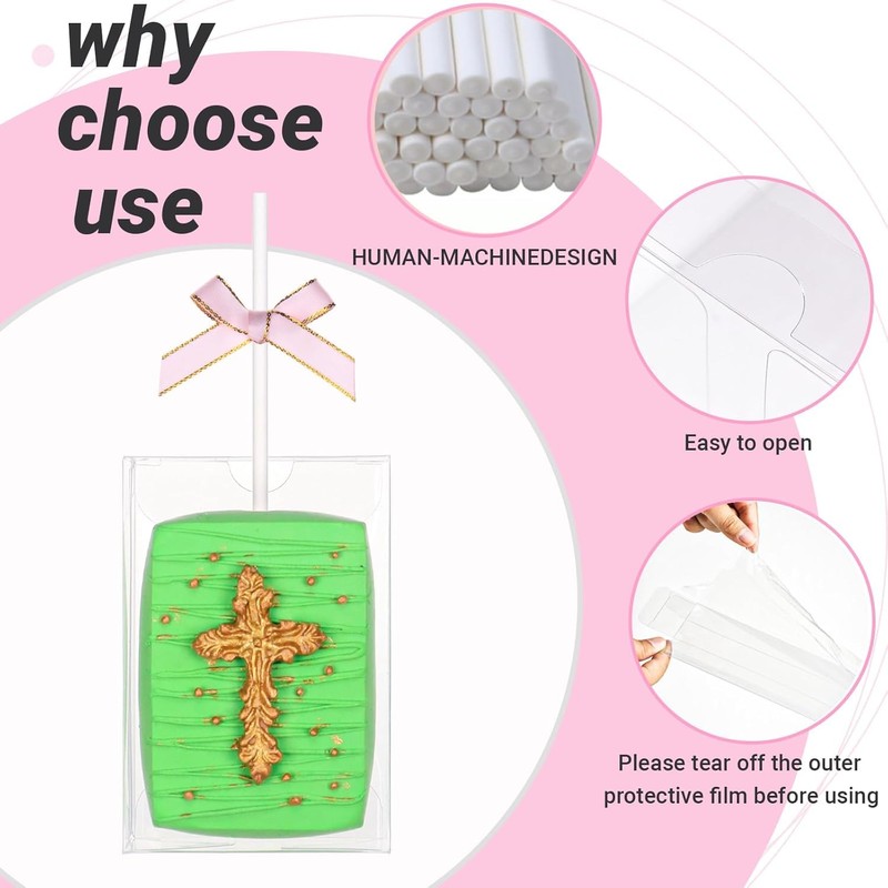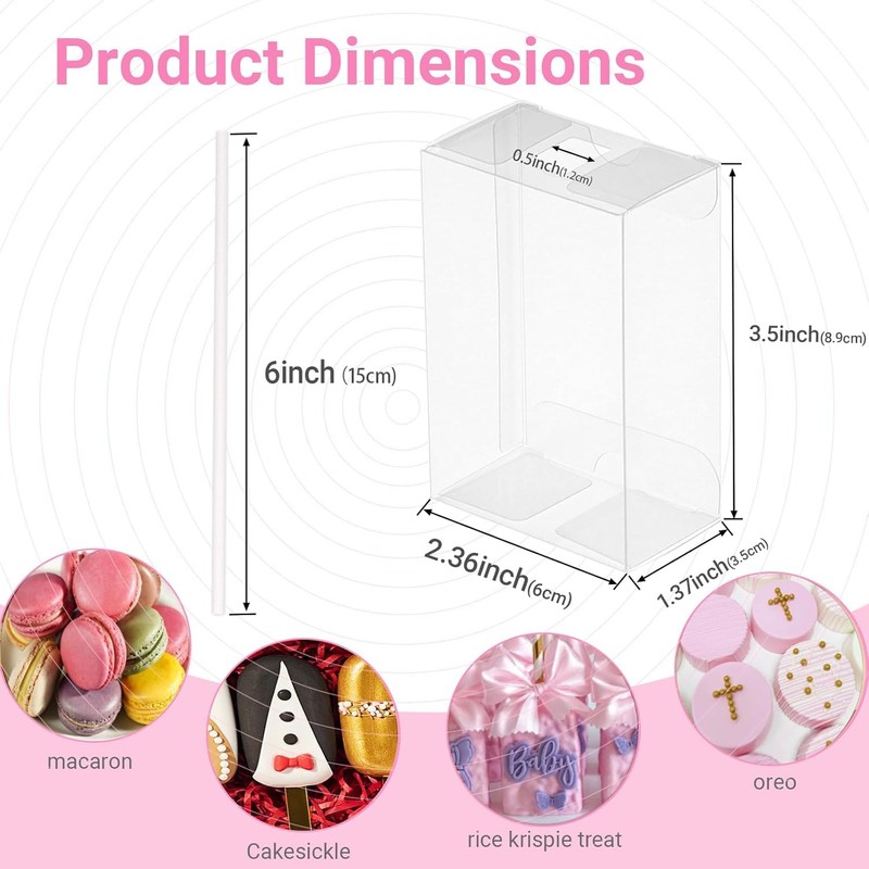 JCXGRVC 20Pack 3.5"x 2.4"x 1.38"Clear Rice Krispie Treat Boxes with Sticks Individually Wrapped Packaing Cakesickle Boxes Party Favors Boxes for Mother's Day Christmas Valentine's Birthday