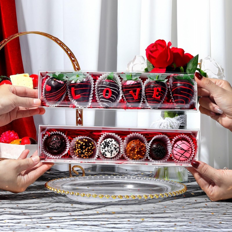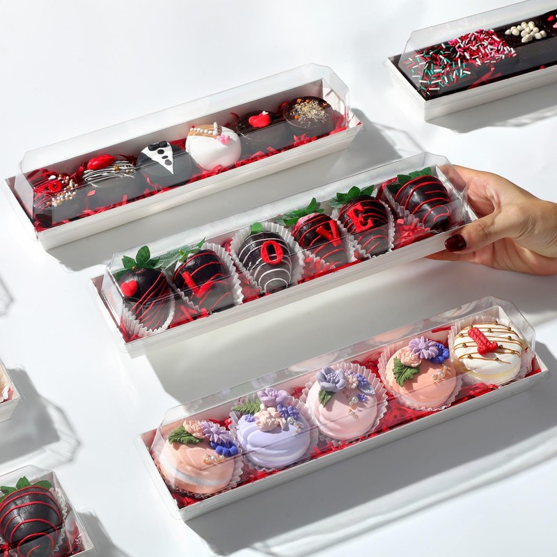 JCXGRVC 50 Pack 12 x 2.8 x 2.4 Inches Chocolated Covered Strawberries Boxes Macaron Boxes with Clear Lids, 12 Inches Long Bakery boxes with Window for Chocolate,truffle,Cocoa Bombs,Cookies