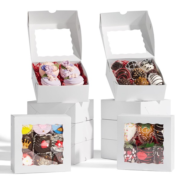 JCXGRVC JCXGRVC 50pcs small bakery boxes 5x5x2 inches white candy cookie boxes with window treat boxes for chocolate truffle box