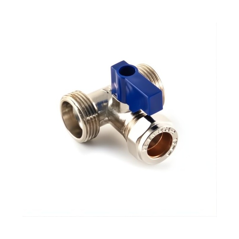 JD Brands Dual Appliance Tee Valve – 3/4" x 3/4" x 15mm BSP Compression – Twin Washing Machine Connector Tap – 15mm Cold Water Feed Splitter for Dishwasher & Washing Machine