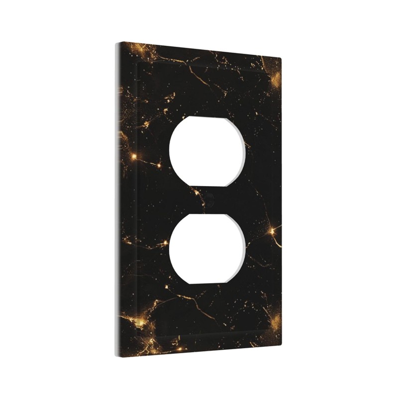 JDAKHD Luxury Marble Black and Gold Decorative Outlet Covers 1 Gang Duplex Decorative Wall Plate Unique Foil Gold Printed Light Switch Plate Covers Electrical Faceplate Bathroom Bedroom Decor