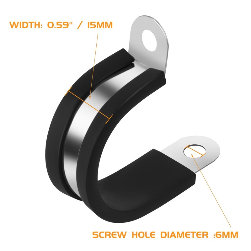 JDHGSHL 20 Pcs 1/4 Inch 304 Stainless Steel Cable Clamp, Rubber Cushioned Insulated Clamp, Conduits Pipe Strap Clamps for Pipe Fixing on Various Surfaces