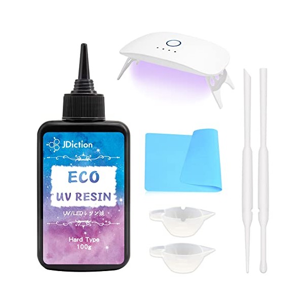 JDiction UV Resin Kit with Light, Super Crystal Clear Hard Resin Glue Sunlight Curing UV Resin Beginner Kit for Jewelry, Coating, and Casting, DIY Craft