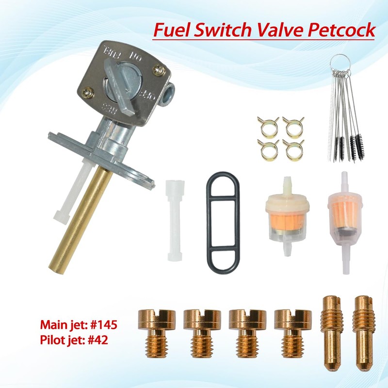 - 【Package Contents】1 x Carburetor , 1 X Gas Fuel Tank Petcock , 1 X Fuel Filter , 1 X Carbon Dirt Jet Cleaner Tool Kit As the Picture Shows