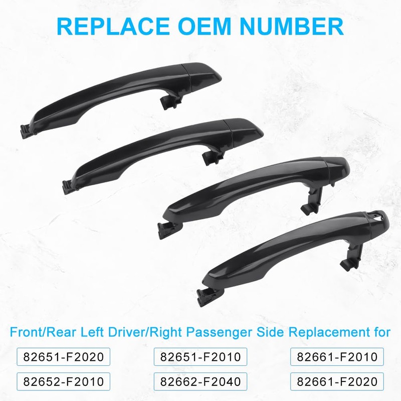 - Direct Replacement: Outside door handles left driver & right passenger side replacement for 82651-F2020, 82651-F2010, 82661-F2010,82661-F2020, 82652-F2010, 82662-F2040
