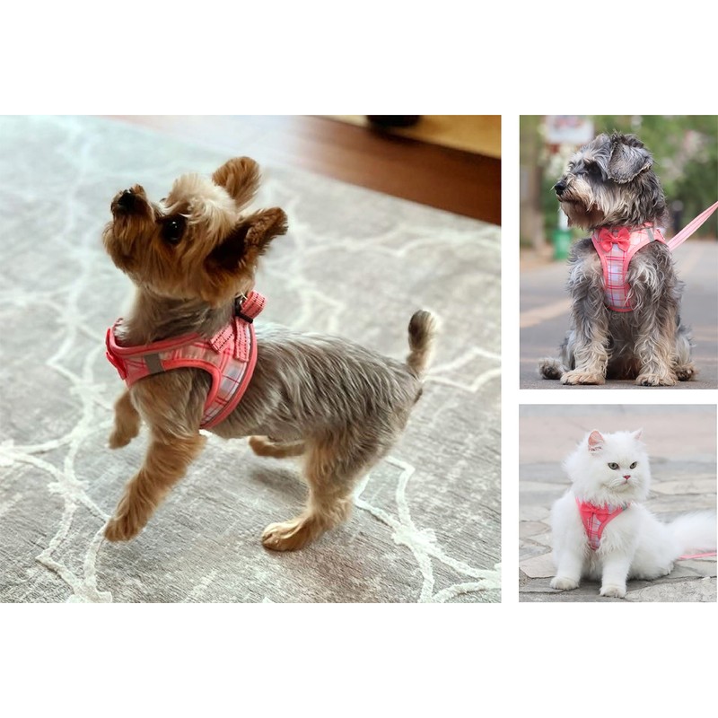 JdotMIN Plaid Step-in Dog Harness and Leash Set, for Small Dog and Cat Vest Harness No Pull, Escape Proof, for Walking Puppy and Kitten, for Travel and Car, Harnais Pour Chien (Pink, XXS)