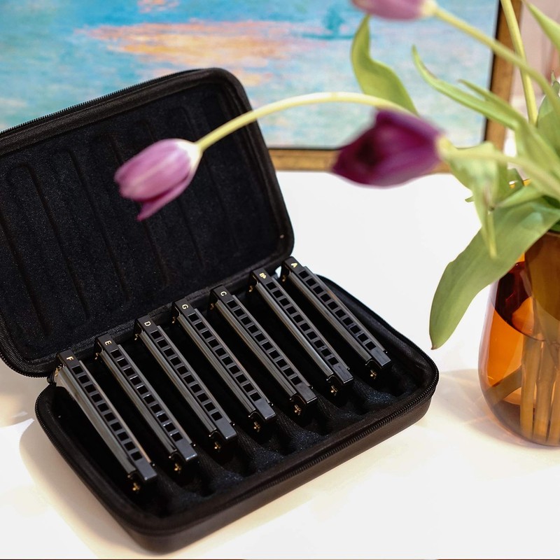 - Professional harmonica set: Excellent design and exquisite workmanship 7-pack of harmonicas includes keys of C, G, A, D, F, E, and B. Superb harmonica system suitable for blues, folk, pop, jazz, country and classical music. We recommend beginners to choose harmonica in C key first.