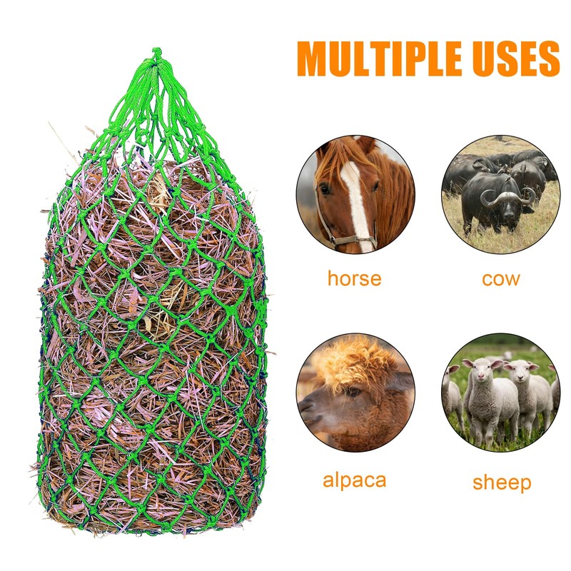 - Slow Feeding: Small holed rope net helps slow down your equine while eating to reduce stomach problems or indigestion. A smarter, more animal, simulates natural grazing.