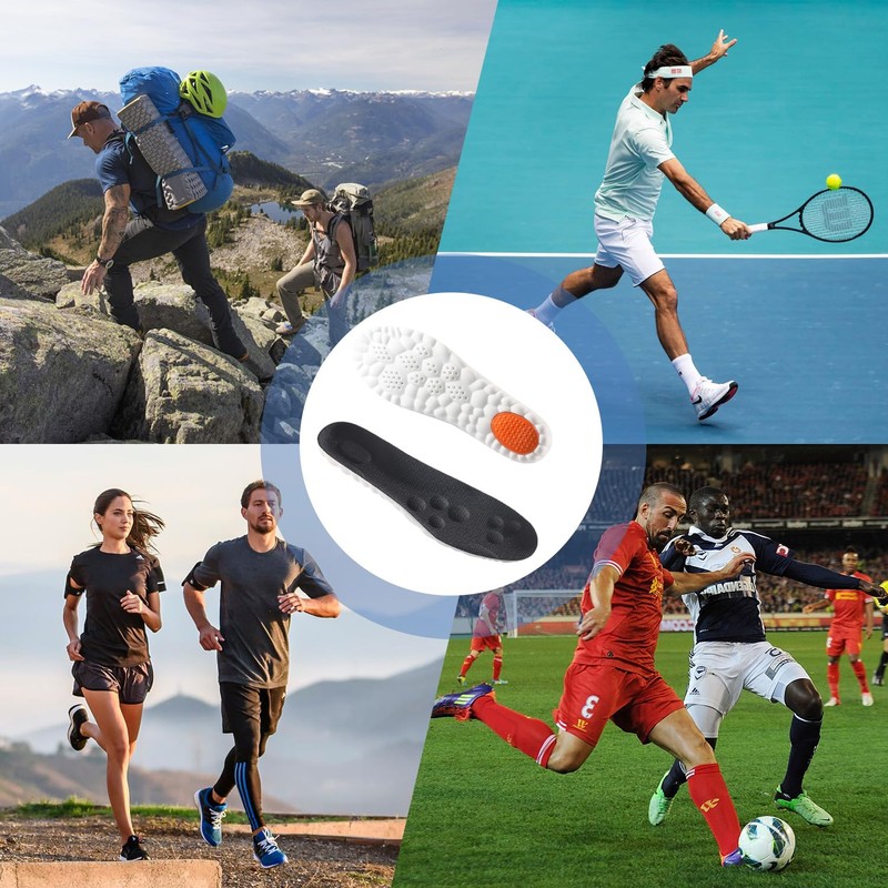 - COMFORTABLE INSOLES Our insoles are lightweight, comfortable. The thickened memory foam provides excellent shock absorption and cushioning. They can support your arch of the foot, reduce pressure on the foot during long periods of standing or working and reduce foot fatigue. The raised acupressure points on the insole allow you to massage your foot with every step.