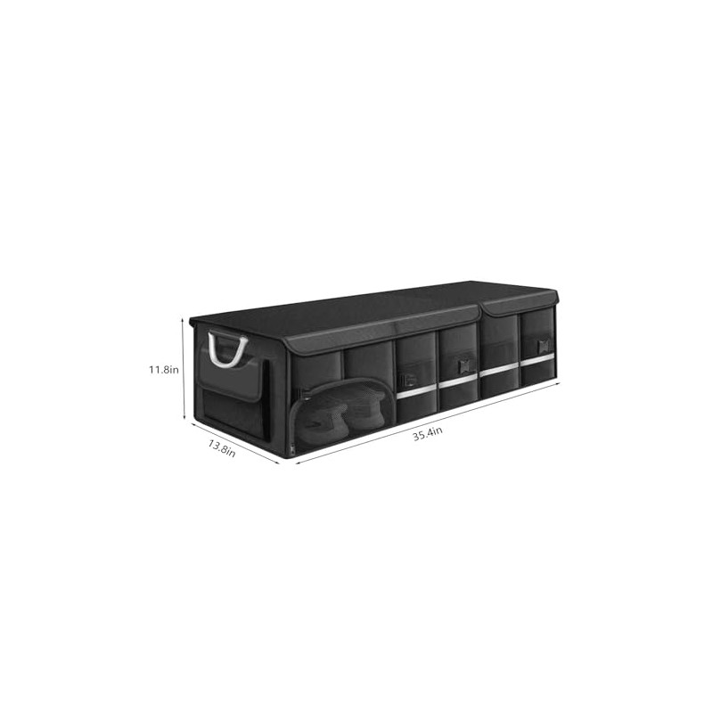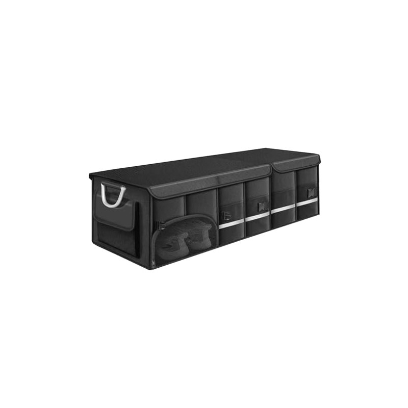 - The car trunk storage box can store various products from groceries to office supplies, accessories or children's toys,and the collapsible, detachable lid keeps your goods out of sight for added security.