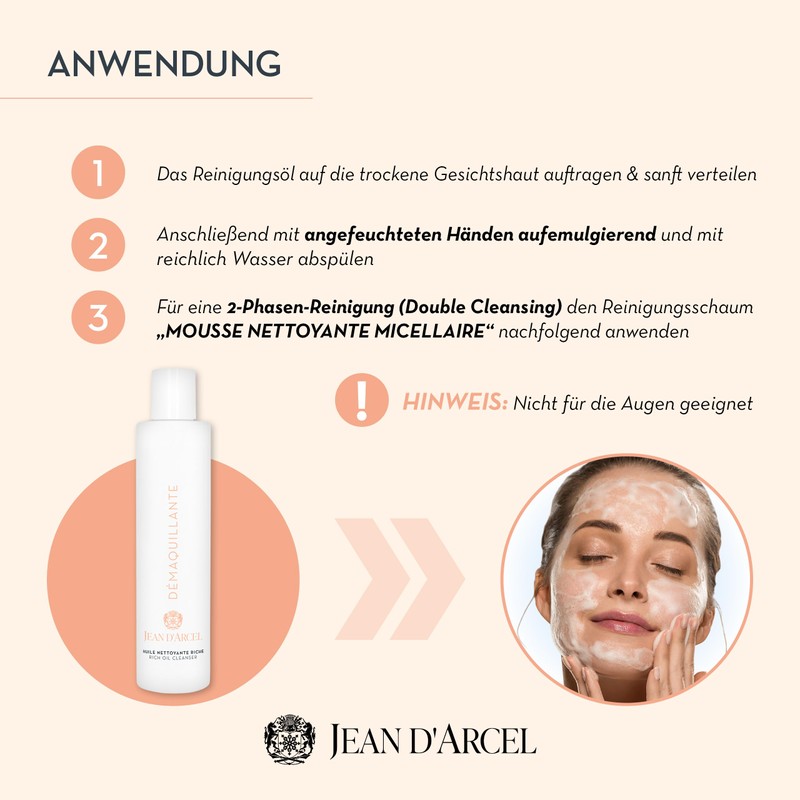 - Box contents: 1 x JEAN D'ARCEL DÉMAQUILLANTE Huile nettoyante riche – Rich Oil Cleanser – Product content 200 ml