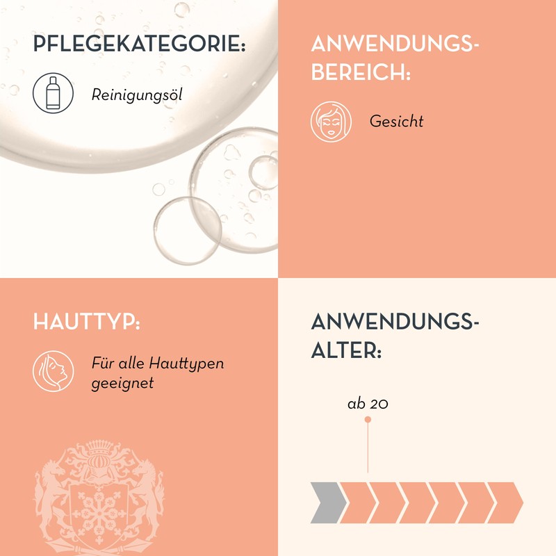 - Result: the skin feels clarified and supple thanks to the effective cleansing after the first application. Because the facial cleansing oil not only removes strong make-up, but also leaves a nourished and soothing feeling during facial cleansing. Dry areas are also visibly smoothed.