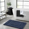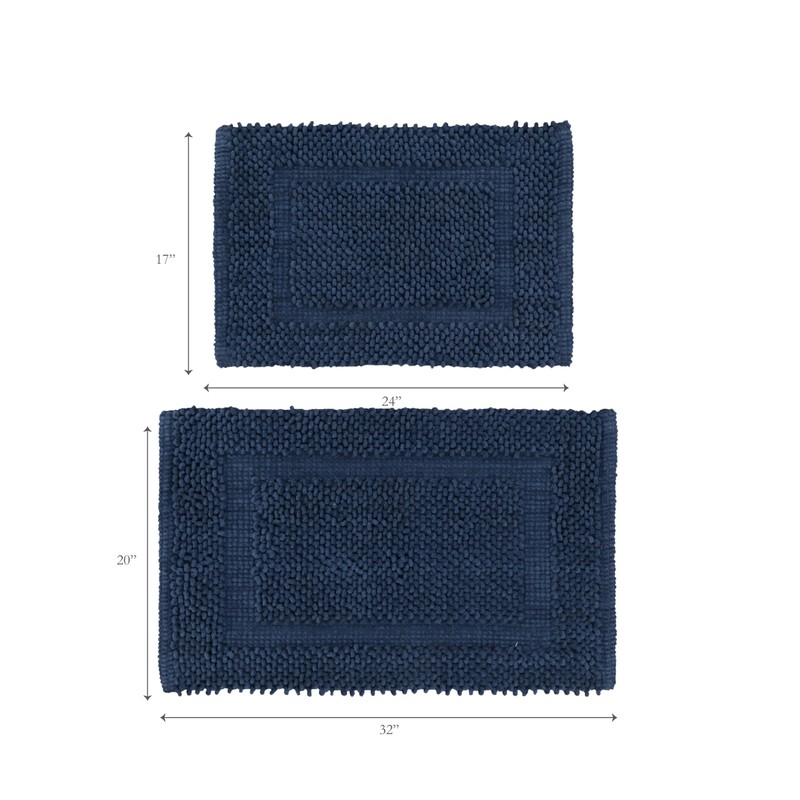 Jean Pierre New York 100% Chenille Cotton Skid Resistant Plush Bath Mat - 17"x24"/20"x32" Bathroom Rug Set - Navy Blue