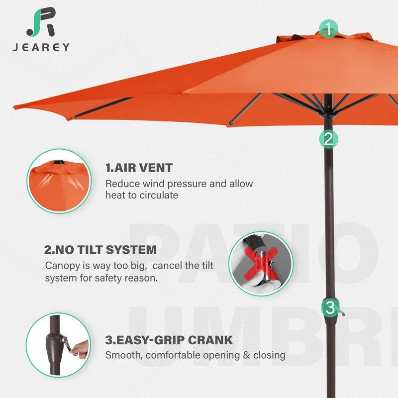 JEAREY 12' Patio Umbrellas Outdoor Table Market Umbrella w/Crank, 8 Sturdy Ribs, UV Protection Waterproof Sunproof for Garden, Deck, Backyard, Pool(Orange)