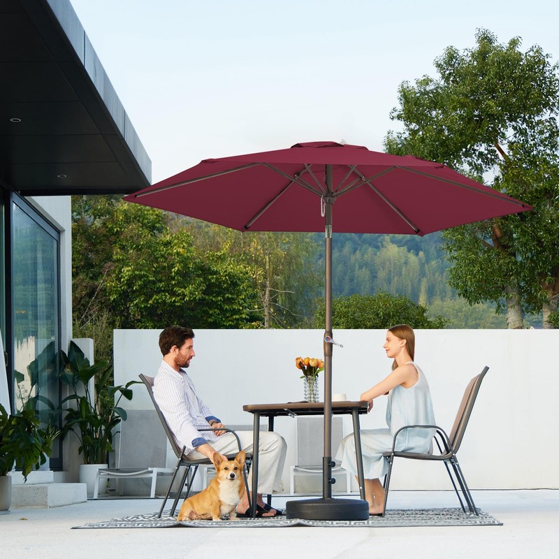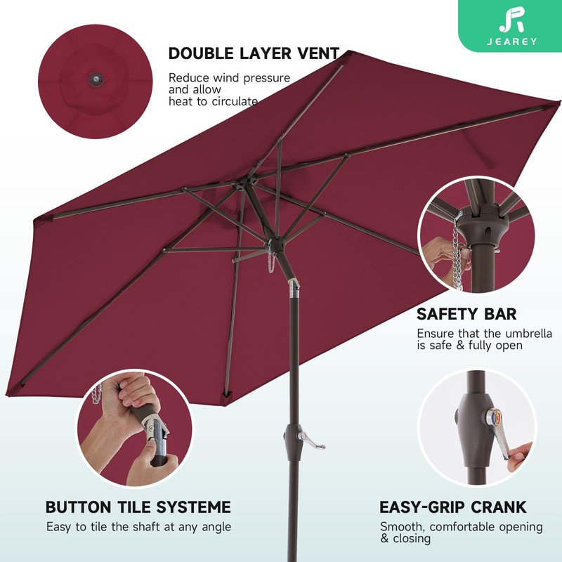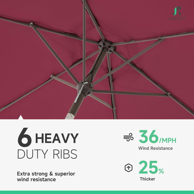 JEAREY 7.5FT Patio Umbrellas Outdoor Pool Umbrella Table Market Umbrella with 6 Ribs, Tilt Button for Deck Backyard Garden,Burgundy