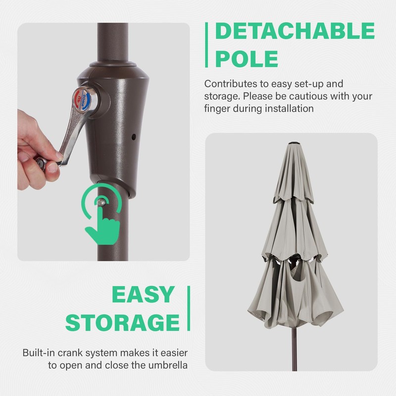 - MORE THAN FABRIC - The umbrella surface is made of 100% polyester fabric. It has high elasticity, firmness and durability. We have added waterproof coating and anti UV coating on the surface of polyester umbrella cloth. To make this outdoor garden umbrella more suitable for your needs.