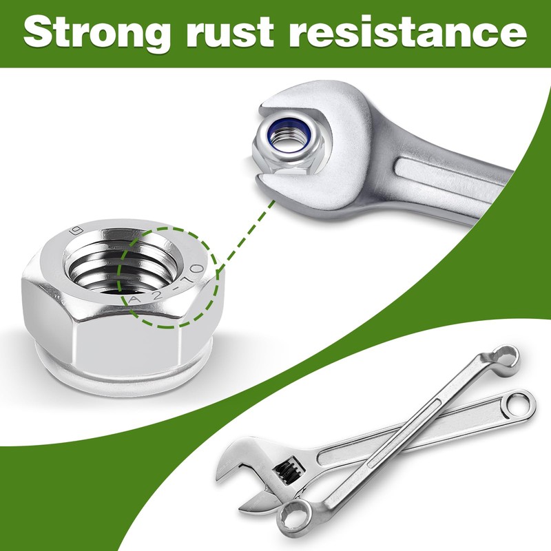 • High quality self-locking nuts: nuts stainless steel is made of A2 V2A 304 stainless steel and nylon with smooth surface and excellent rust and corrosion resistance.