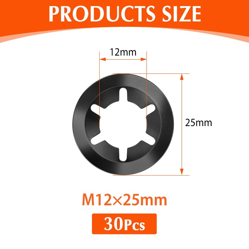 Jeboler Pack of 30 M12 Lock Washers, Clamping Washers, Inner Tooth Quick Release Clamping Ring, 65 Manganese Steel Locking Washer, Black