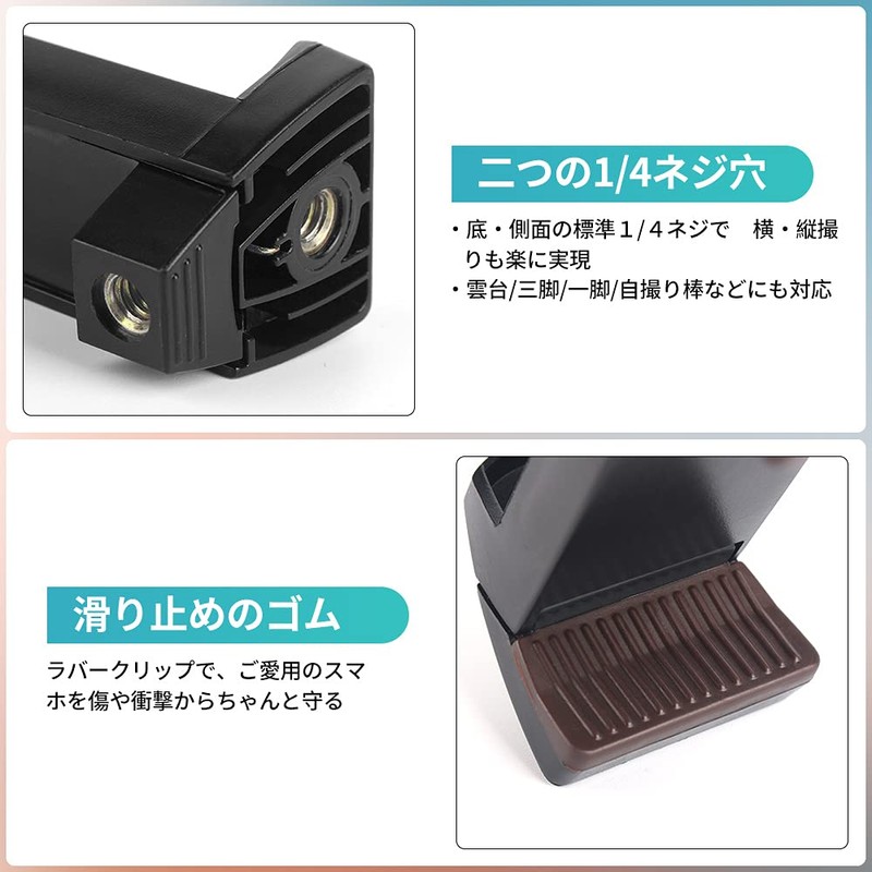 - (Increased Expandability) 1. The magic arm has a shoe mount that can be removed with 1/4 screw. It is easily compatible with photography equipment with 1/4 screw hole and shoe base (such as shooting lights, webcams, microphones, smartphone holders, etc.) 2. The included smartphone holder is designed with anti-slip rubber on the inside of the clamp to protect your smartphone from falls; 1/4 screw holes on the back and sides for easy landscape and portrait shooting. Pinching Range: Approx. 2.3 - 3.5 inches (58 - 90 mm)