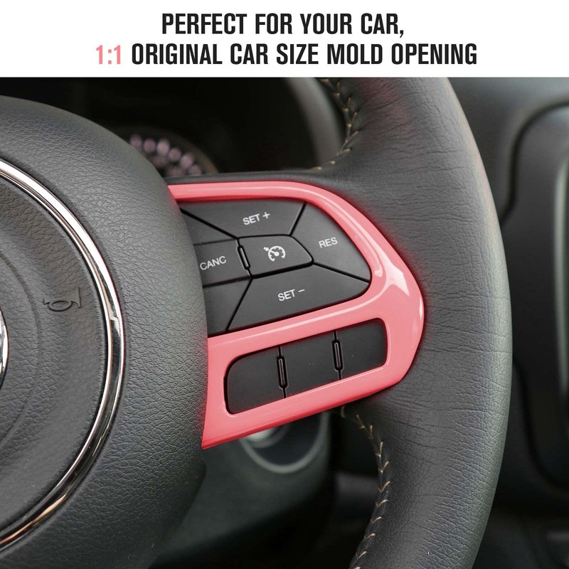 JeCar 3 piezas de accesorios interiores para volante de coche para Jeep Renegade 2015-2023, para Jeep Compass 2017-2020 (rosa)