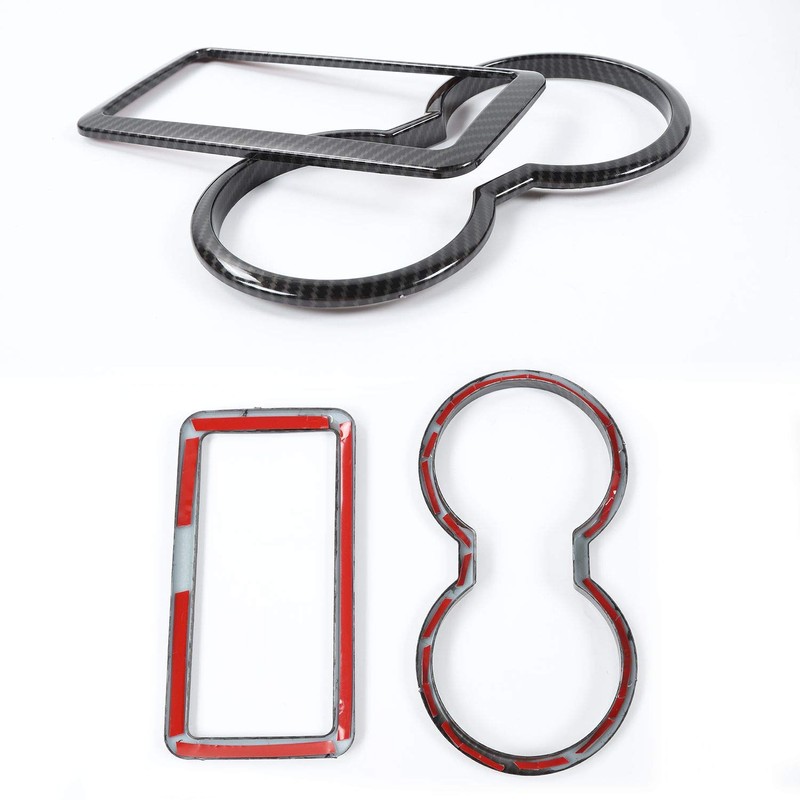 JeCar 2pcs Carbon Fiber Interior Center Console Gear Shift Cup Holder Panel Trim Frame for 2009 2010 2011 2012 2013 2014 Ford F150 Raptor