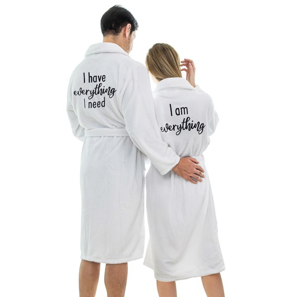 Jecery 2 Pack His and Hers Matching Robes Set I Have Everything I Need Robes for Couples Christmas Valentines Gift(White)