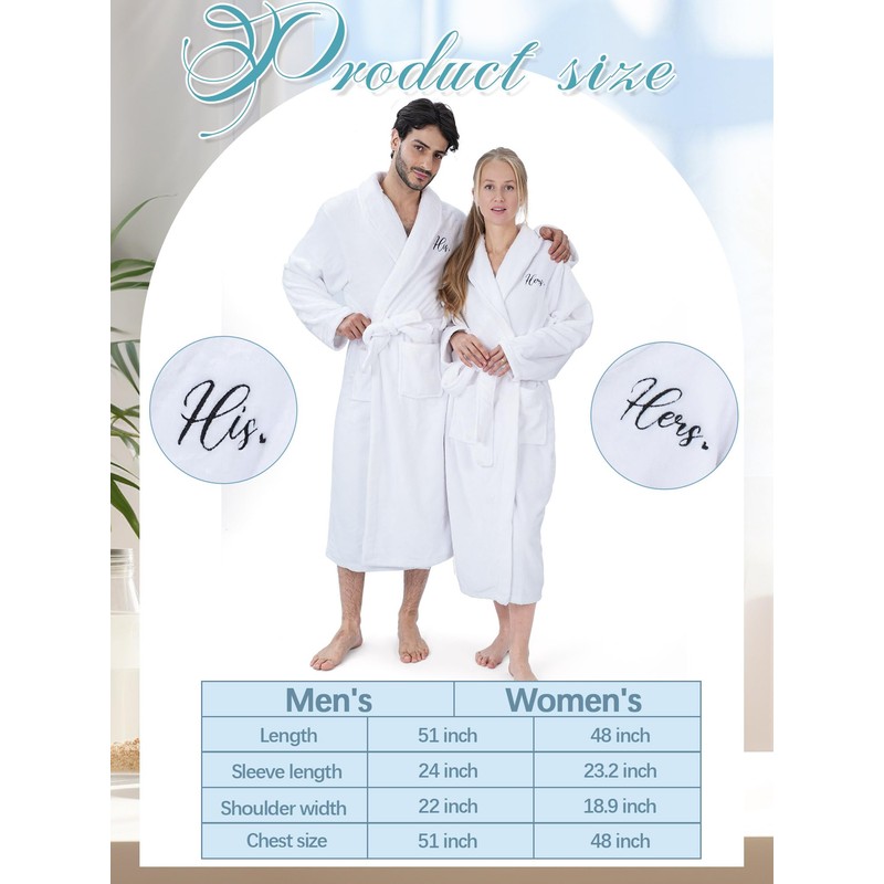 - Robes Set for Couples: our package includes 2 pieces of His and Hers robes; They're ideal for you and your partner or can be applied as thoughtful gifts for your friends, family or couples you adore