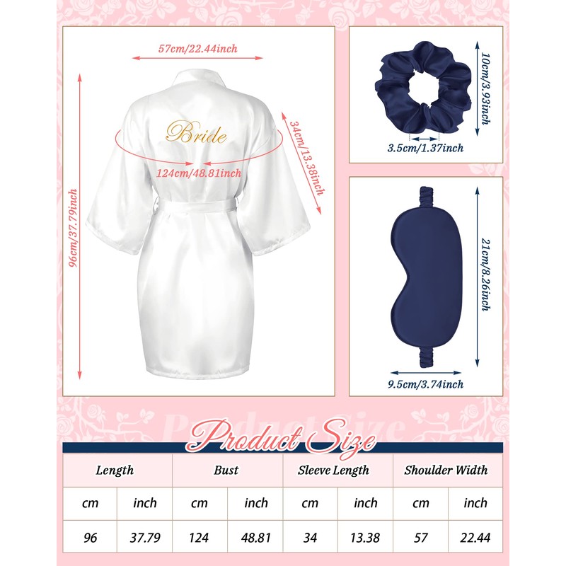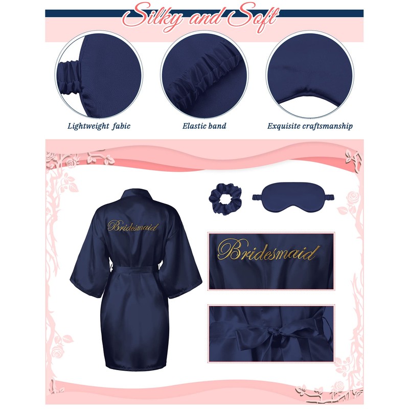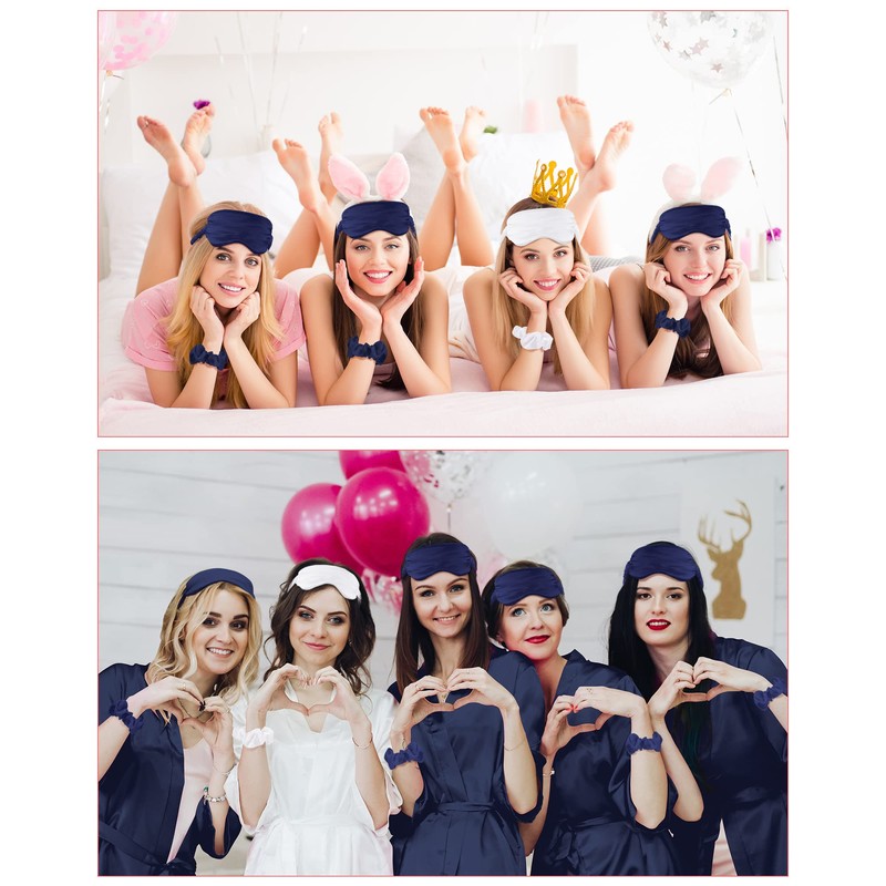 - Soft and Comfortable: the bridesmaids robes, eye mask and hair ring are all made of quality satin fabric, which is soft and skin friendly; The inside of the eye mask is filled with 180 grams of silk cotton, which will not cause burden to your eyes, and the silky touch will make you feel comfortable