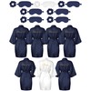 Jecery 7 Pcs Bridesmaid Robe Sets Bride Silk Satin Robes Bridal Party Robes with Sleeping Eye Mask and Elastic Headband Sets (White, Navy Blue)