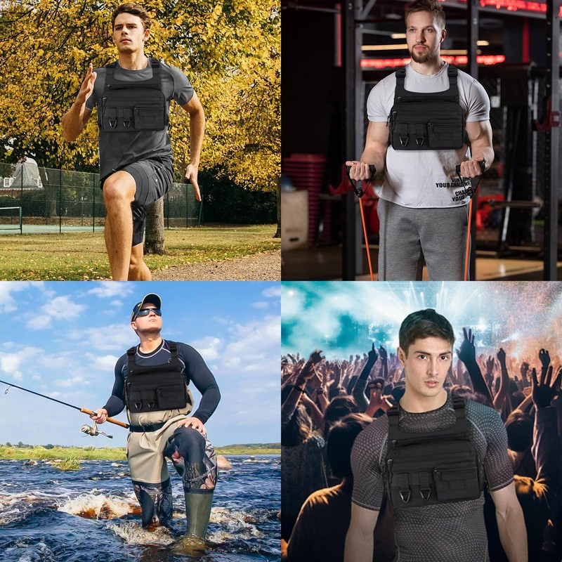 - 【 Portable and Convenient Tactical Chest Bag】Our chest bag is a good choice as a sports utility pack. Measure 28x23x4.5CM/11x9x1.7 inches. With a detachable pouch and two multi-functional triangle buckle. Keep your essentials like your phone, earbuds, wallet, and more within reach whether you're strolling in the park or working out at the gym.