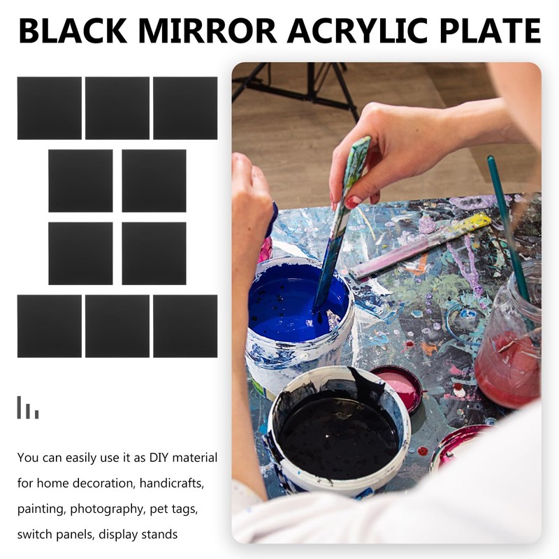 JECOMPRIS 10pcs Black Acrylic Board Cast Square Panel for Photo Frame, DIY Crafting