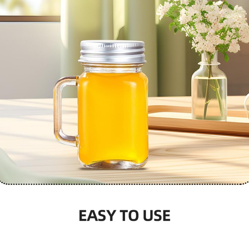 JECOMPRIS 4 OZ Mason Jar with Lid: 6pcs Drinking Glasses Cups with Handle - Regular Mouth Drinking Jars for Drinks Canning Preserving Meal Prep