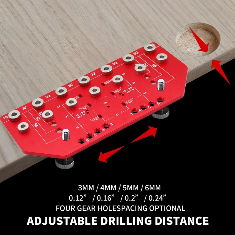 - Multi-Functional Positioning: suitable for the cabinet door hinge with a direct drilling of 35mm and a fixed distance of 45mm or 45mm at both ends. The upgraded version is also equipped with a left and right direction of 32mm distance positioning holes, and a 37mm, 50mm, 64mm quick positioning holes in the upper and lower directions.