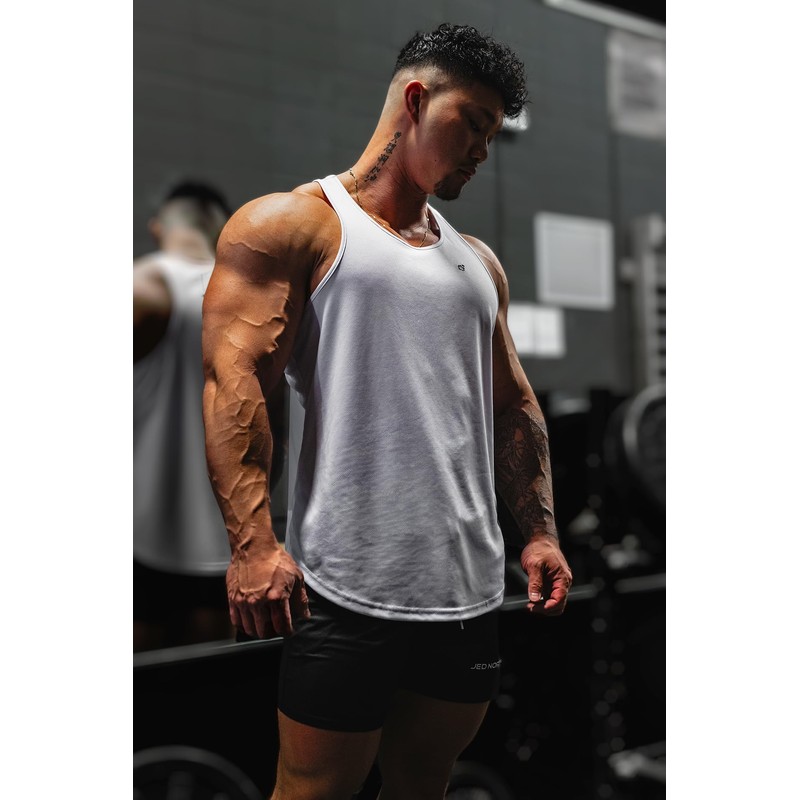 Jed North Men's Quick Dry Microfiber Bodybuilding Stringer Tank Top Weight-Training Y-Back Racerback,White,Small
