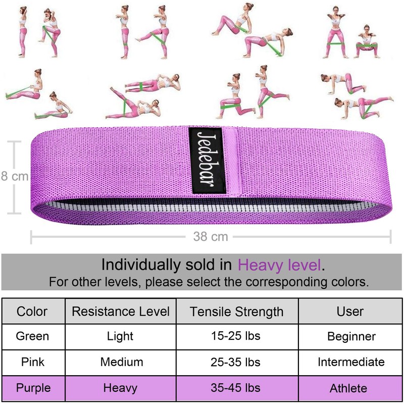 - ★Upgraded Widened Non-Slip Resistance Band★ - No more worry about the rolling up and sliding problem, NO cutting into your skin. Jedebar resistance hip bands are made of upgraded high quality cotton polyester stretch fabric material, featuring anti-slip elastic nature latex inner, far better than rubber/latex bands. The best portable gym and home workout accessory for men and women.
