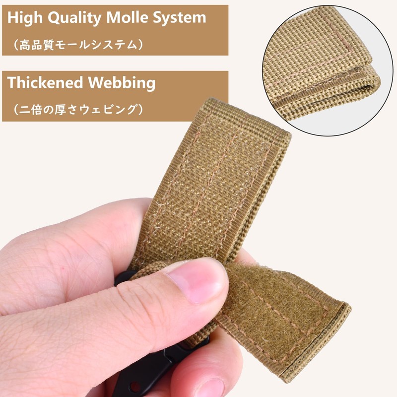 JEELAD Key Ring, Carabiner, Tactical Ring, Velcro, Molle Key Holder, Multi-functional, Compatible with Pouches, Bags, Backpacks, khaki - 4 pcs