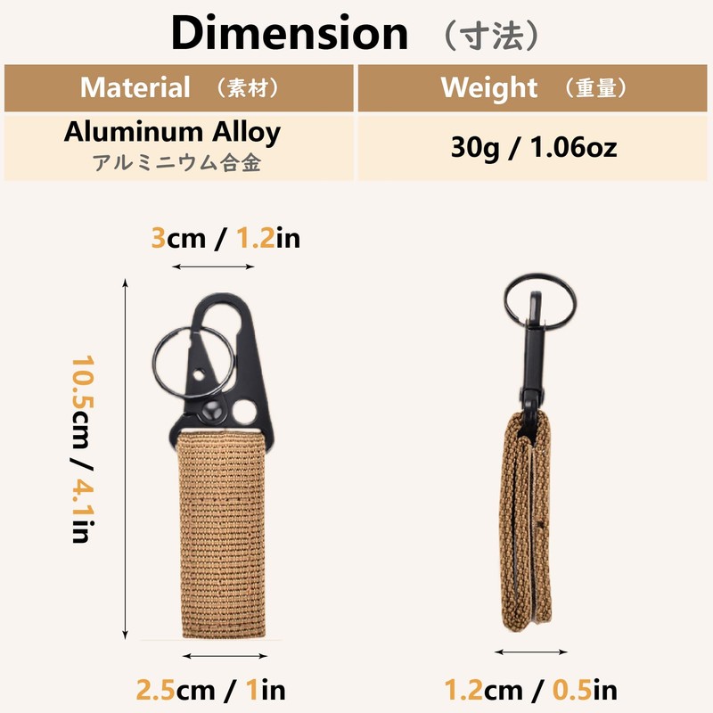 - Specifications: Material: Belt is nylon fabric, key holder is made of metal, Weight: 1.1 oz (30 g) per unit