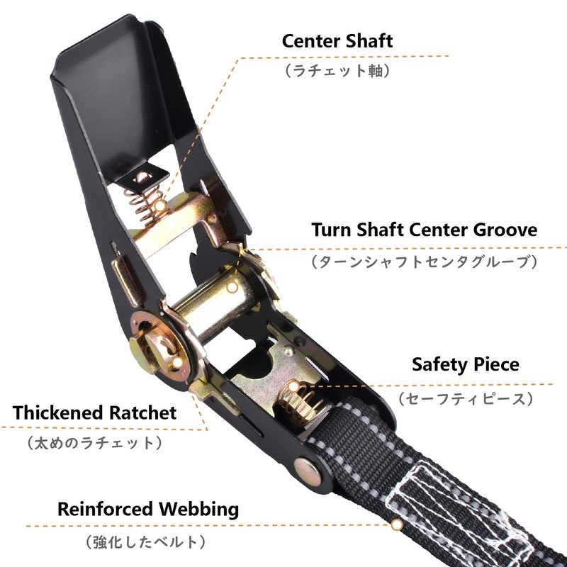 - Durable: The ratchet buckle is made of steel for durability. In addition, the polyester material is resistant to abrasion and pulling, and will not deteriorate even after long-term use
