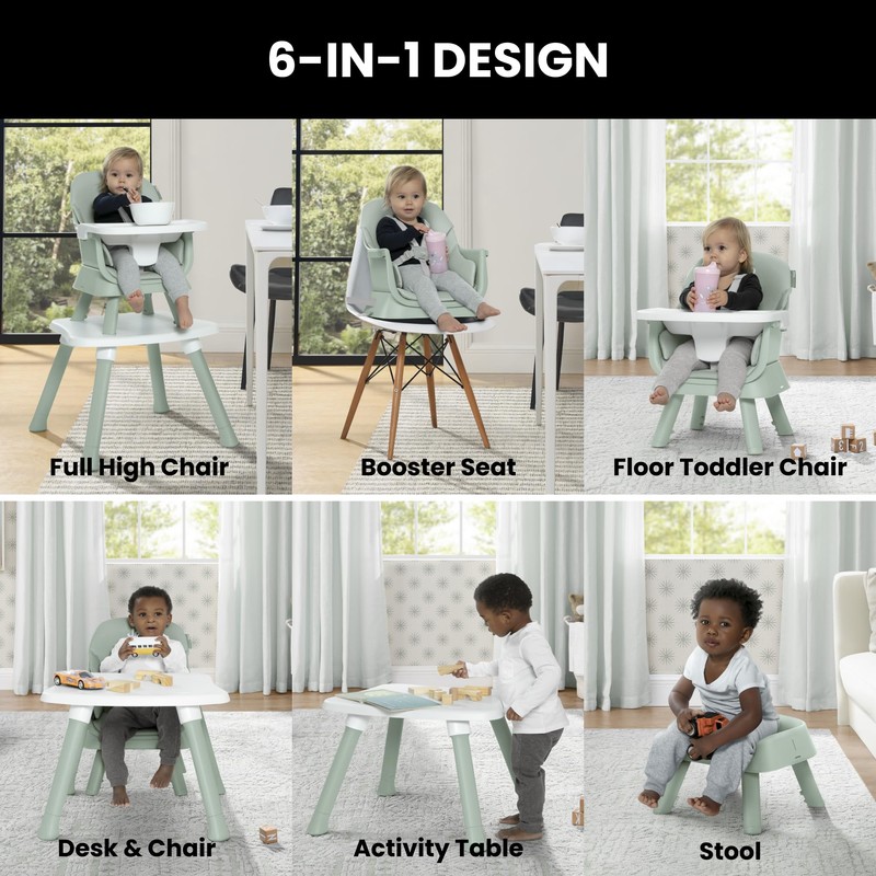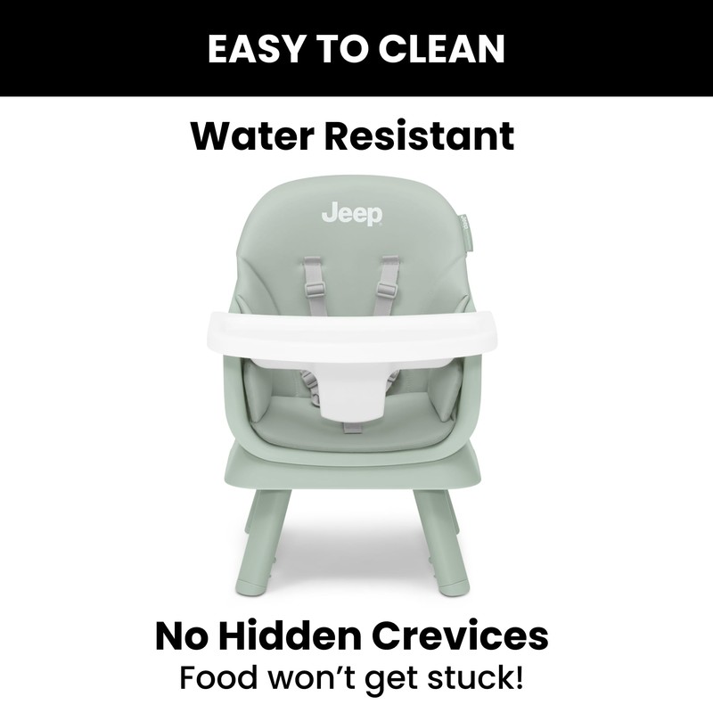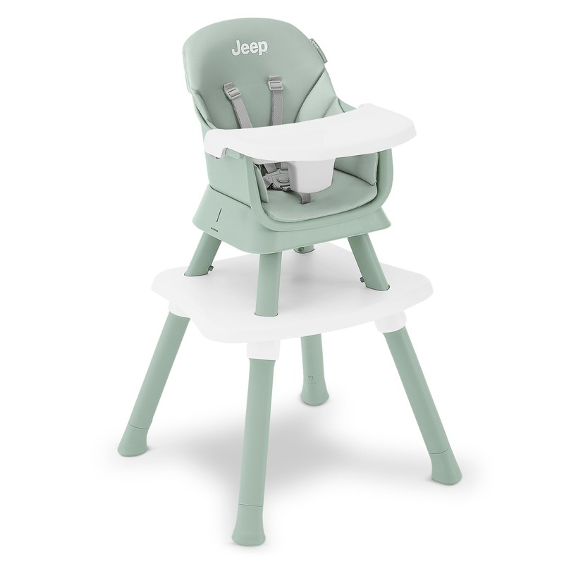 Jeep Milestone 6-in-1 High Chair by Delta Children - High Chair Converts to Stool, Booster Seat, Toddler Chair, Activity Table and Desk and Chair, Sage Green