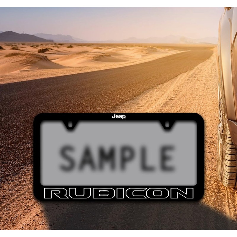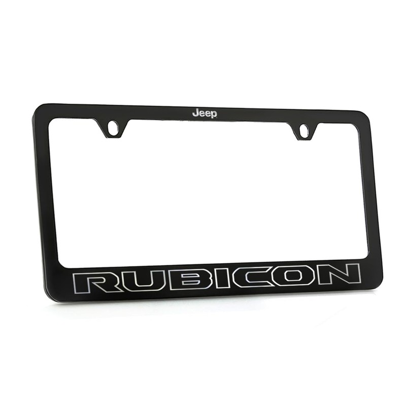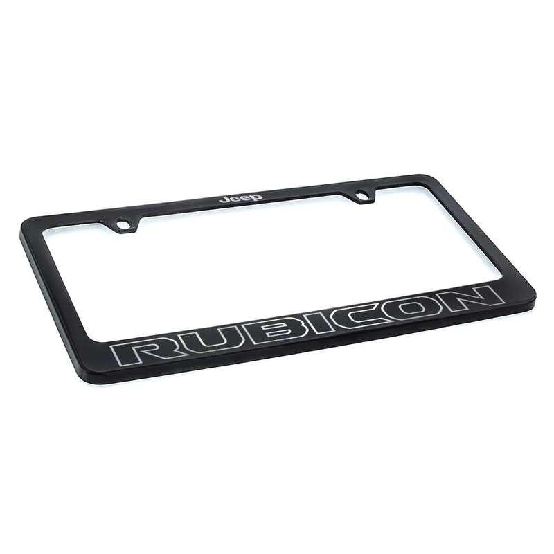 Jeep Rubicon Black Coated Metal License Plate Frame with Exposed Chrome Logo
