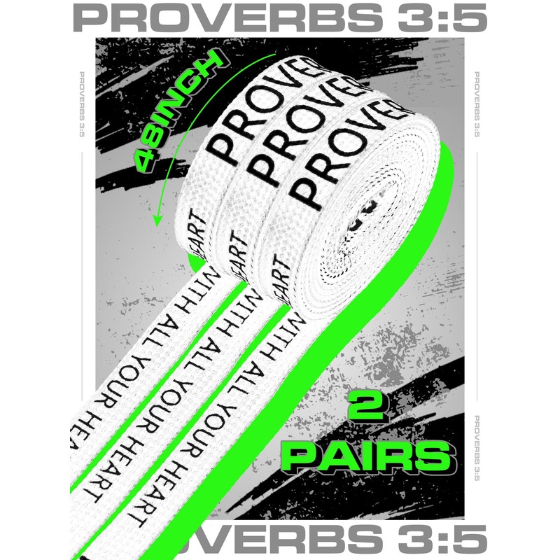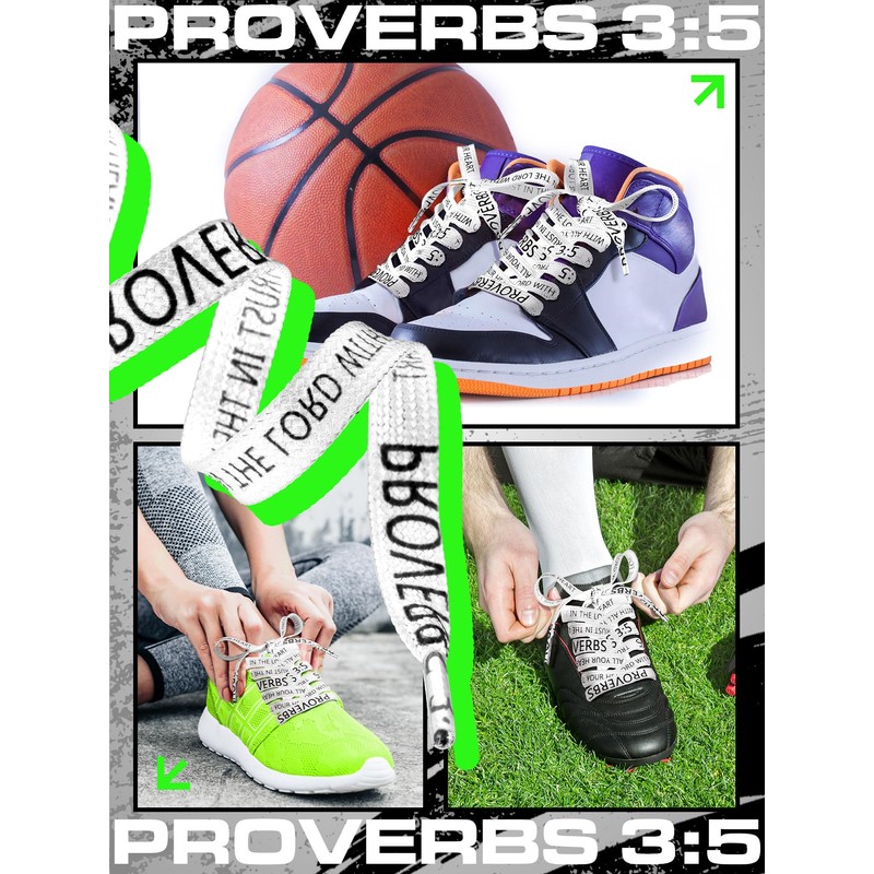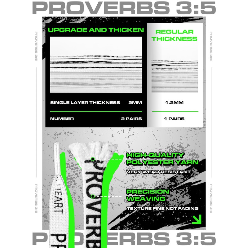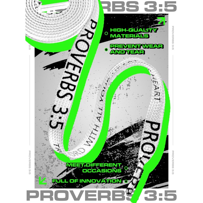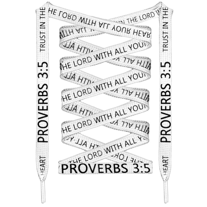 - Faith Filled Design: inspiration meets style with these proverbs shoelaces; Our unique design features double sided printing of Proverbs 3: 5 Trust in the LORD with all your heart, offering both a stylish accessory and a daily reminder of spiritual strength