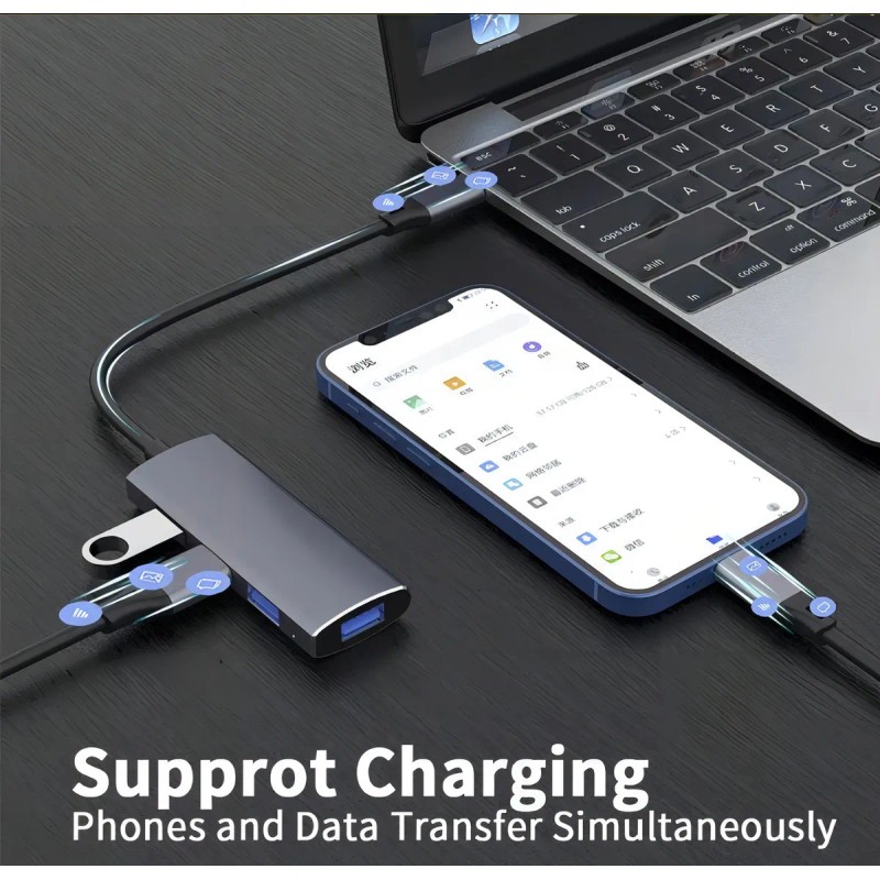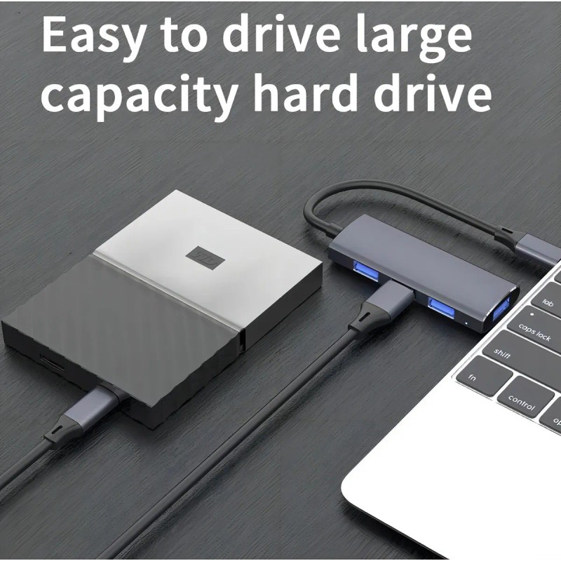 Este concentrador USB C cuatro en uno puede convertir fácilmente 1 puerto USB C en 1 puerto de datos USB3.0 y 3 puertos de datos USB2.0, que se utilizan para expandir otros dispositivos periféricos convenientes, como discos duros, discos U móviles, mouse, teclado, tarjeta, etc. Muy adecuado para la oficina en casa o el lugar de trabajo en casa.