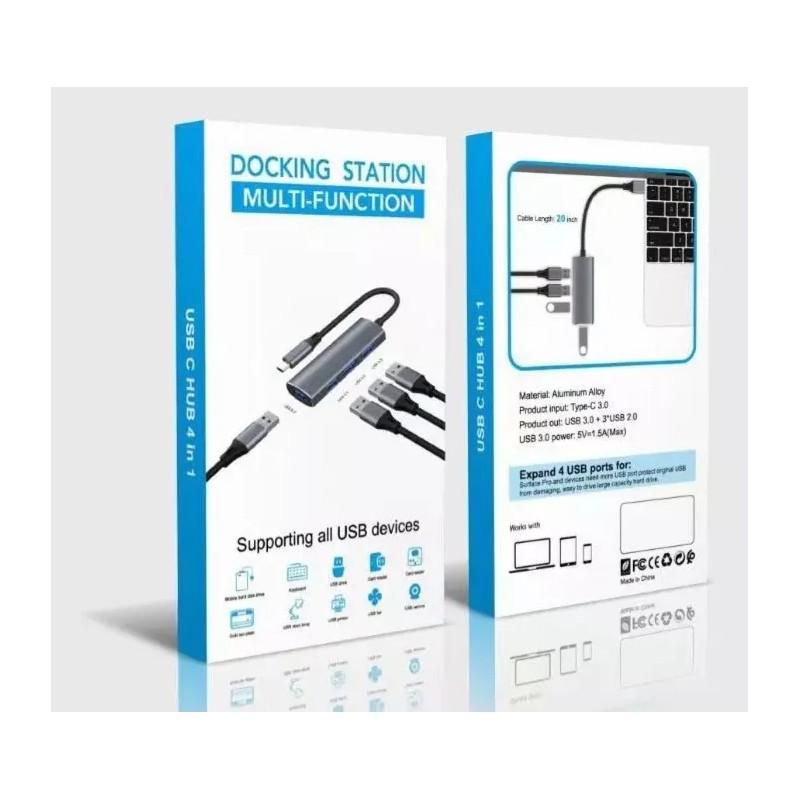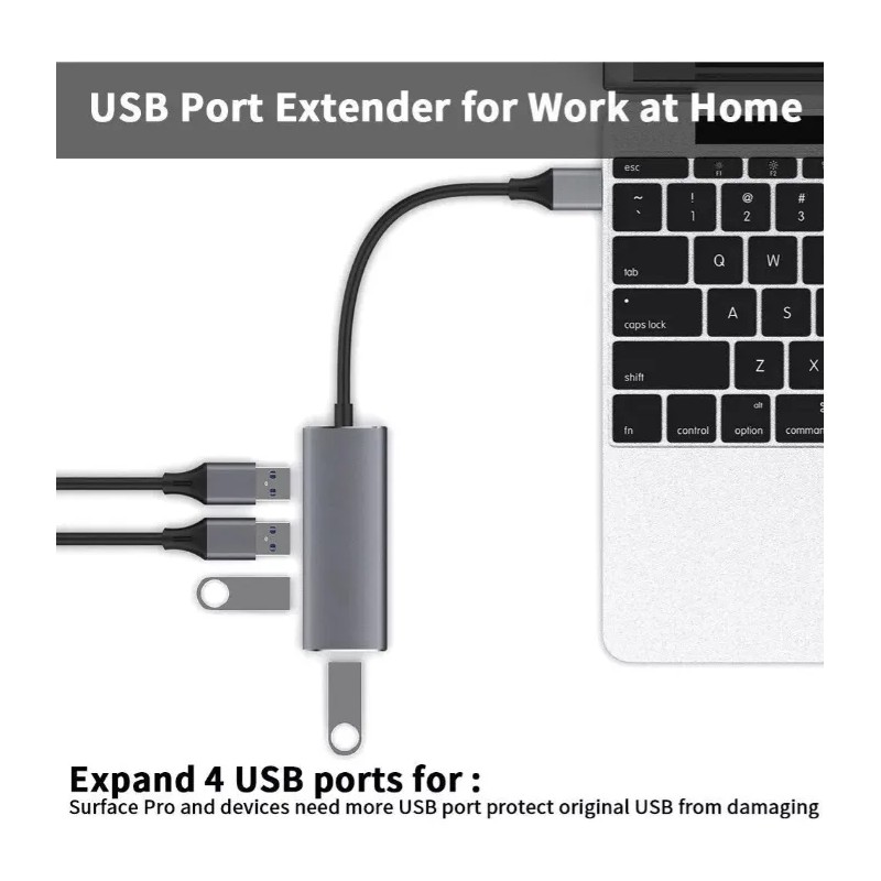 Este concentrador USB C cuatro en uno puede convertir fácilmente 1 puerto USB C en 1 puerto de datos USB3.0 y 3 puertos de datos USB2.0, que se utilizan para expandir otros dispositivos periféricos convenientes, como discos duros, discos U móviles, mouse, teclado, tarjeta, etc. Muy adecuado para la oficina en casa o el lugar de trabajo en casa.