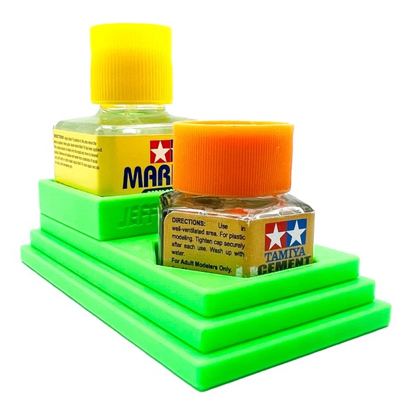 Jeff Did It! 20ml Hex & 40ml Square Bottle Glue Cement Stepped Holder Holds 1 Hex Bottle & 1 40ml Square Bottle Compatible with Tamiya Cement 40ml Square Bottles 87038 & 20ml Hex (Bright Green)