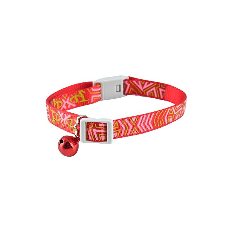 Jeffers Pet Cat Collar with Bell – Reflective Breakaway Plastic Safety Collar for Kittens & Adult Cats, Adjustable Single Ply Nylon, High Visibility Indoor & Outdoor Use – Geometric Pattern, Red