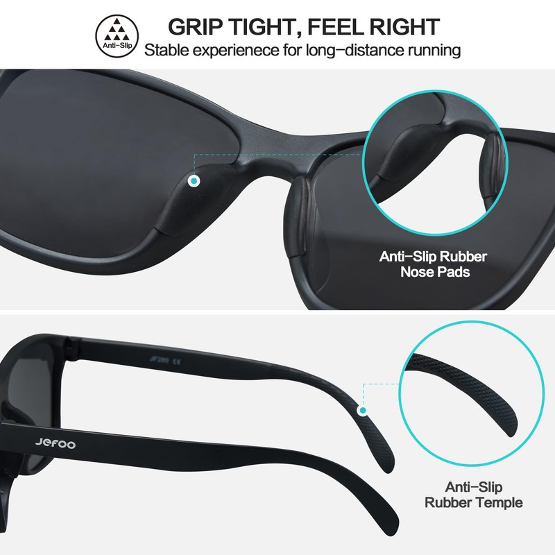 - EASY TO STYLE: Crafted with premium materials, with a simple, clean look, Jefoo sunglasses easily matched with both sports gear or casual outfits. Whether you're running, hiking, driving, fishing, traveling, or hitting the beach, these shades have you covered in trends